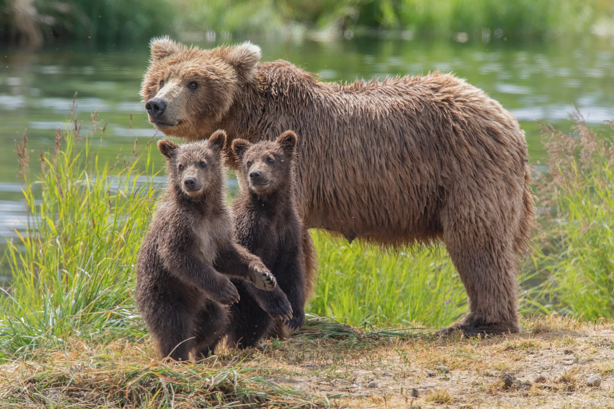 Brown bear with cubs, Alaska.