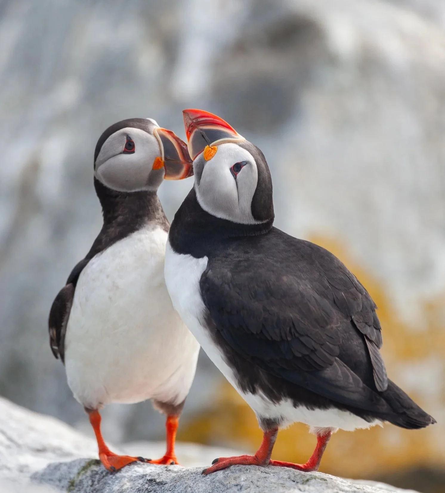 Pair bonding at the colony. Atlantic Puffins, Maine.